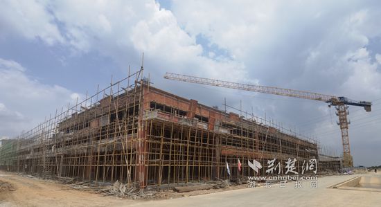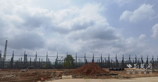 8月26日,咸寧高新區(qū)天府烤鹵施工項(xiàng)目現(xiàn)場(chǎng),遠(yuǎn)處巨大的場(chǎng)地上,鋼柱林立,刺破蒼穹,渾然列陣。
