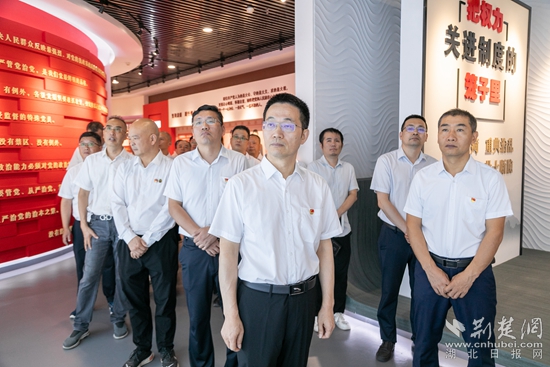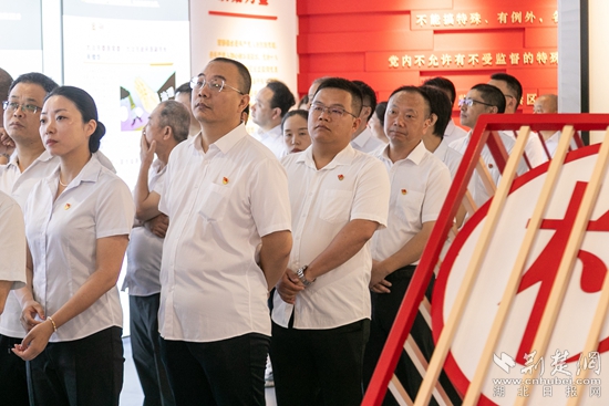 在教育基地,全體黨員領(lǐng)導(dǎo)干部依次參觀了“紅旗漫卷 初心如磐”“紀(jì)法如山 警鐘長鳴”“清廉黃石 續(xù)寫華章”三大主題展廳,重點了解了中國廉政文化的發(fā)展脈絡(luò)、黃石市反腐倡廉建設(shè)歷程及本市近年來查處的違紀(jì)違法典型案例。