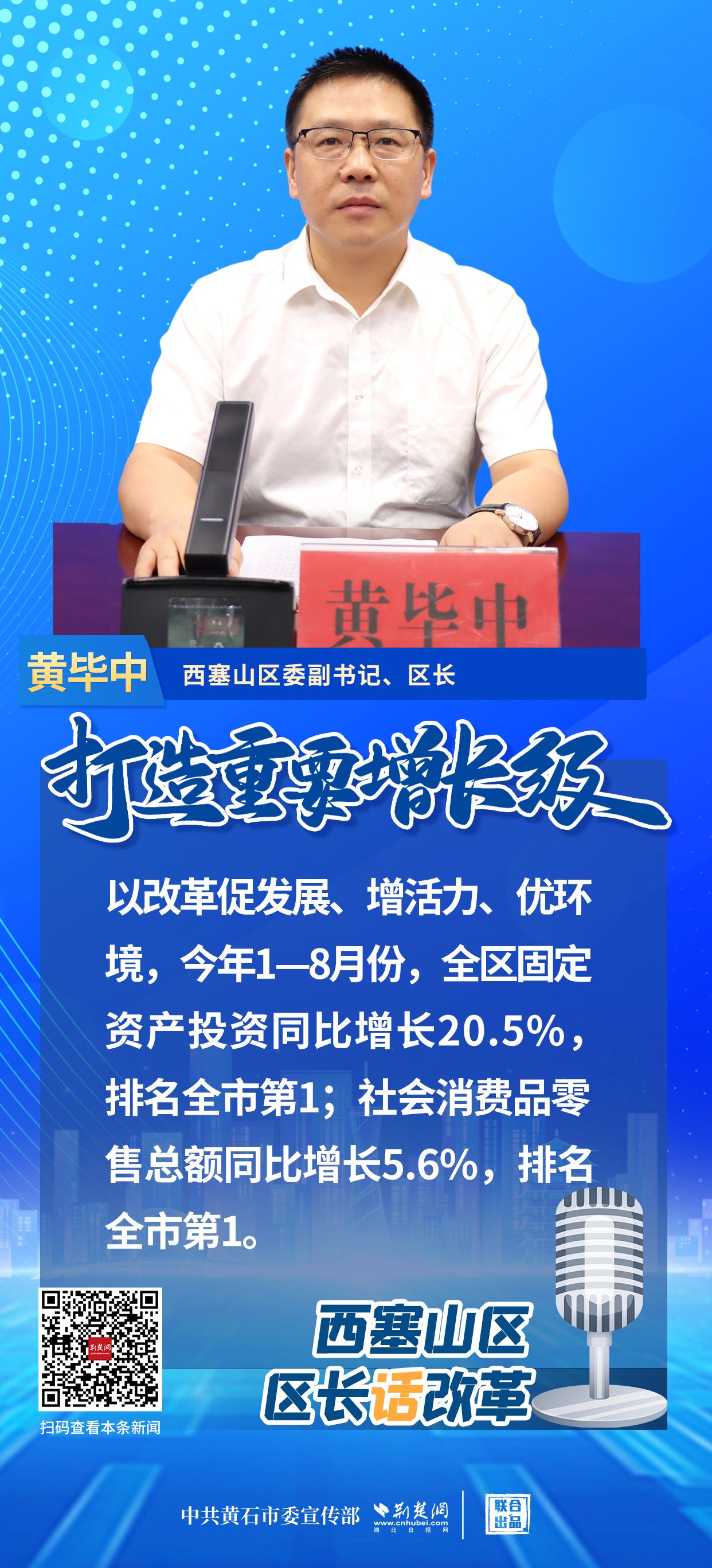 荊楚網(wǎng)(湖北日?qǐng)?bào)網(wǎng))訊(記者 阮瓊 劉璐 通訊員 王登虎)9月20日,黃石市召開(kāi)“打造重要增長(zhǎng)極 縣(市、區(qū))長(zhǎng)話改革”第五場(chǎng)新聞發(fā)布會(huì),介紹西塞山區(qū)打造重要增長(zhǎng)極、深化改革工作情況。