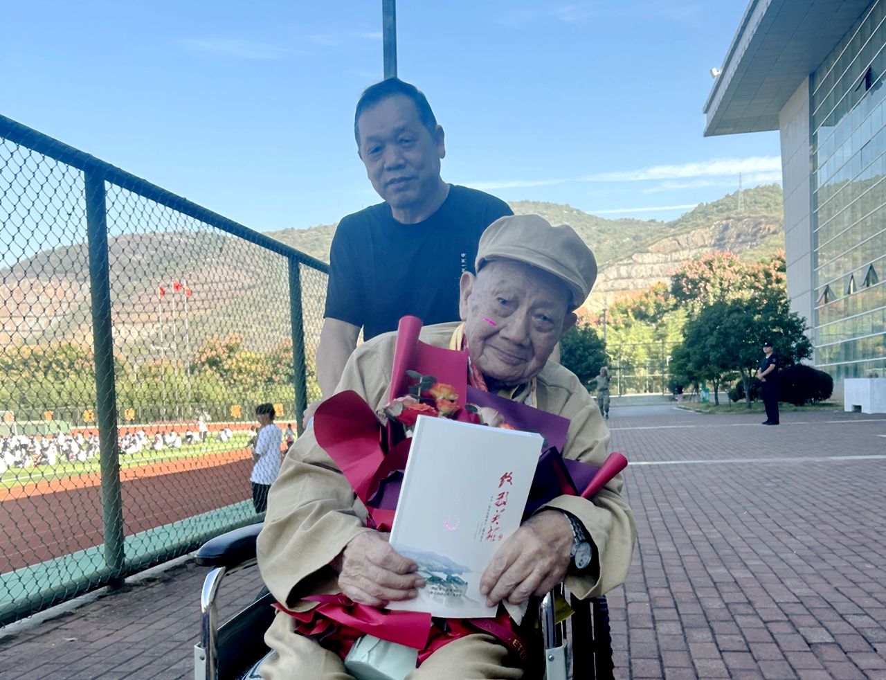 98歲老兵領(lǐng)隊(duì)走紅毯。黃石日?qǐng)?bào) 周巍 攝