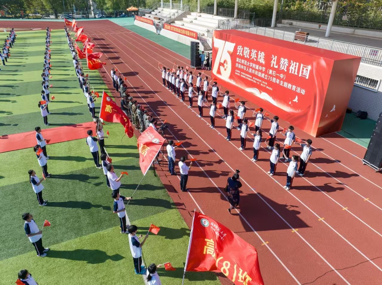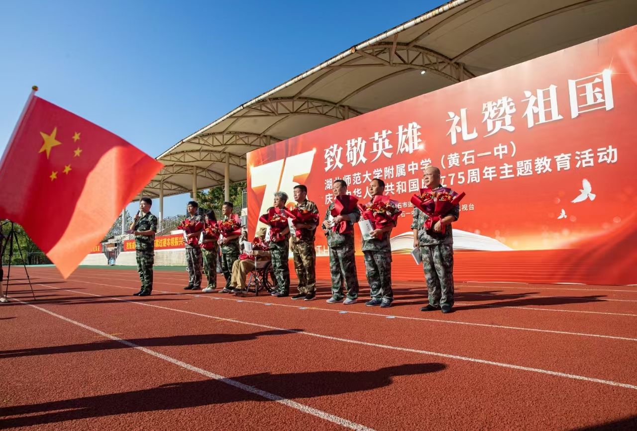 9月29日上午,國(guó)慶節(jié)臨近,“致敬英雄 禮贊祖國(guó)”——湖北師范大學(xué)附屬中學(xué)(黃石一中)慶祝中華人民共和國(guó)成立75周年活動(dòng)舉行。活動(dòng)通過走一次紅地毯、唱一首主題歌、獻(xiàn)一束手捧花、送一本報(bào)道集等形式,致敬為共和國(guó)無私奉獻(xiàn)的英雄們。