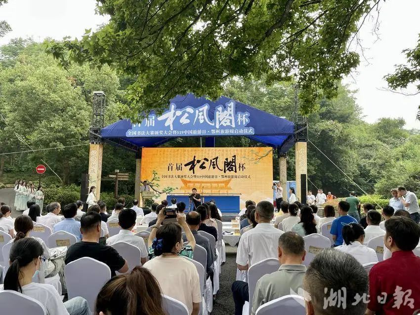 2024年5月19日,中國旅游日當天,首屆“松風閣”杯全國書法大賽頒獎大會在鄂州市西山風景區(qū)隆重舉辦,省、市領導為獲獎代表頒獎。與此同時,現(xiàn)場邀請專家進行了“跨越千年,對話黃庭堅——黃庭堅松風閣書法的價值及對鄂州文化的塑造”對話。