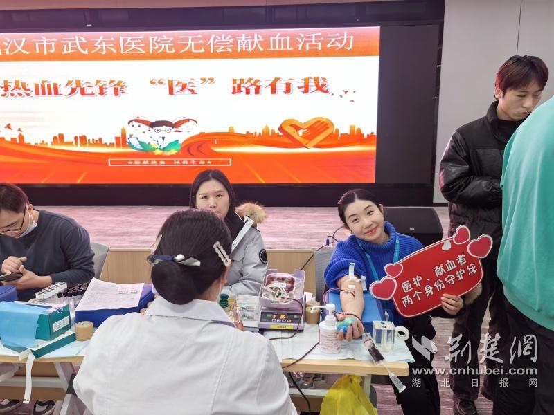 荊楚網(wǎng)(湖北日報網(wǎng))訊(記者 李燕 通訊員 陳漢波 王嘉怡)為響應(yīng)全市衛(wèi)健系統(tǒng)的無償獻(xiàn)血號召,全力做好城區(qū)醫(yī)院的血液保障工作,1月14日,武漢市武東醫(yī)院聯(lián)合武漢血液中心開展“熱血先鋒‘醫(yī)’路有你”無償獻(xiàn)血活動,廣大醫(yī)務(wù)人員積極響應(yīng),用涓涓熱血為生命續(xù)航助力。