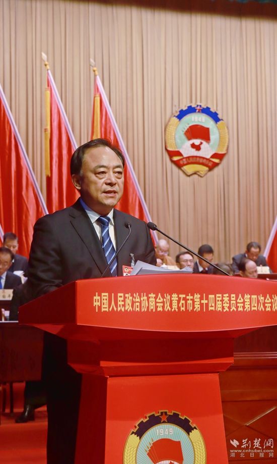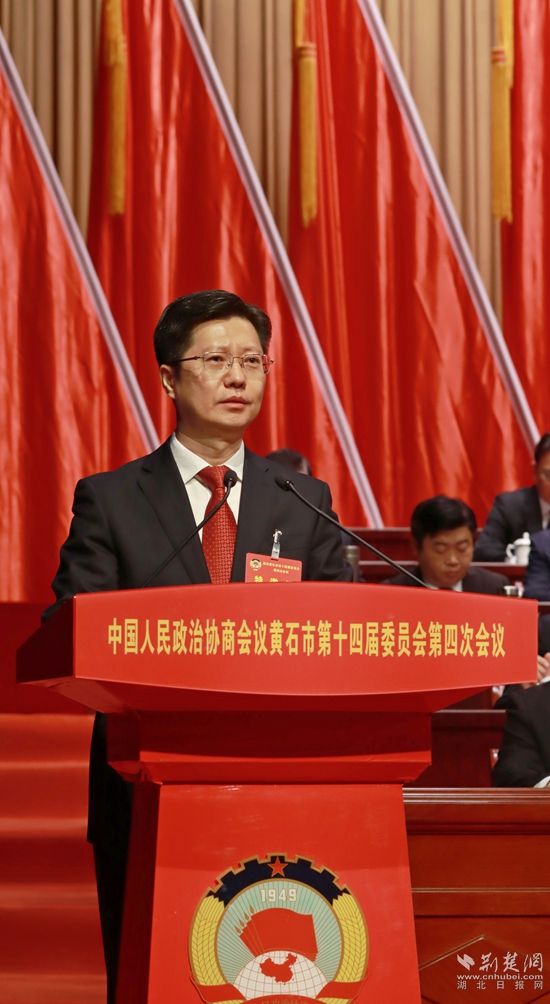 2月6日,中國(guó)人民政治協(xié)商會(huì)議黃石市第十四屆委員會(huì)第四次會(huì)議在黃石磁湖劇院開(kāi)幕。中共黃石市委書(shū)記郄英才講話。