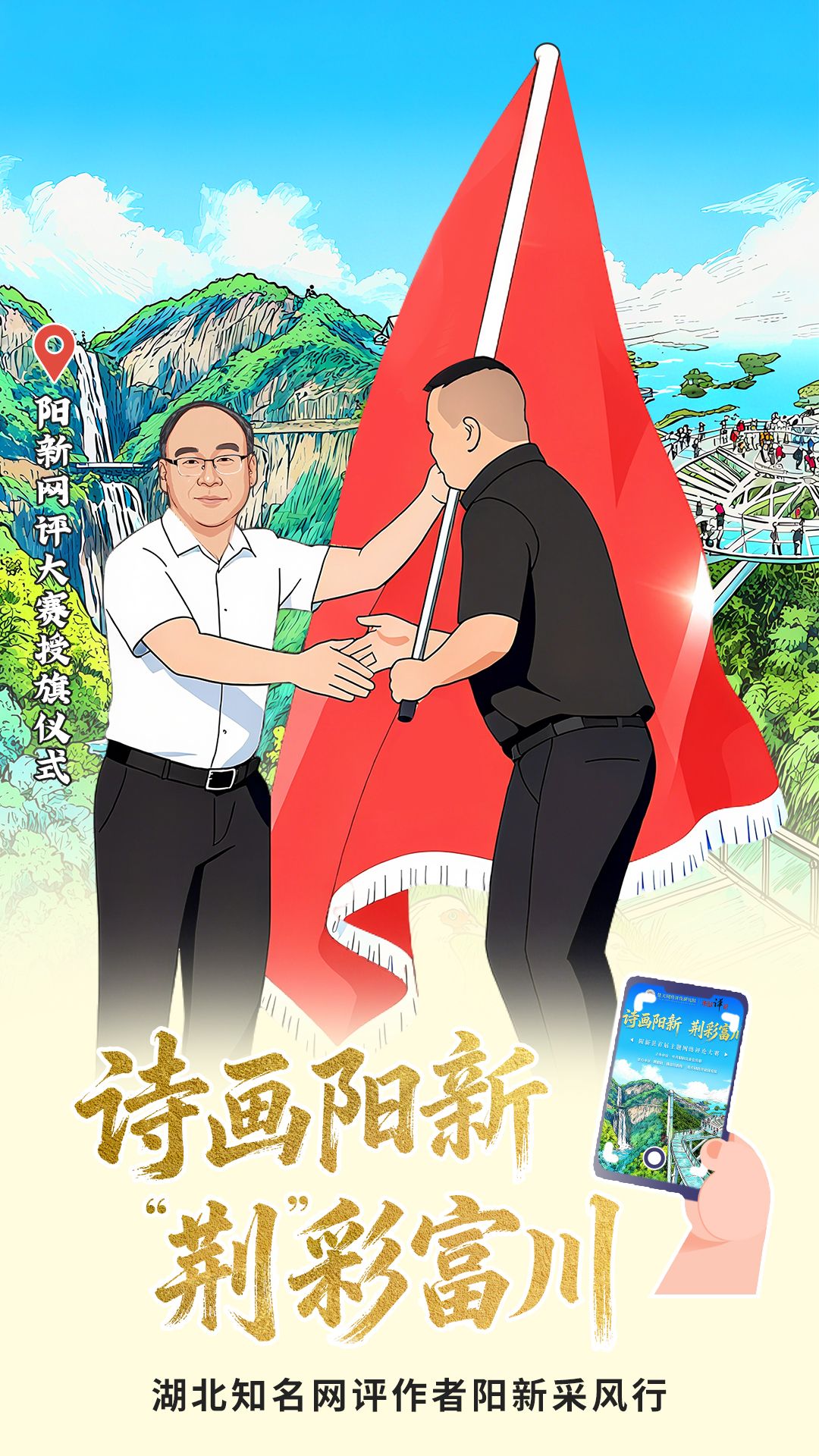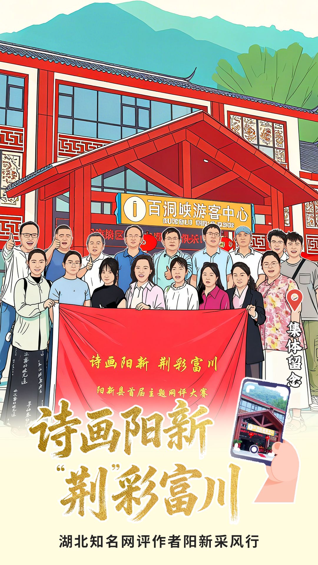 湖北骨干網(wǎng)評作者調(diào)研陽新文旅產(chǎn)業(yè)后集體留影。