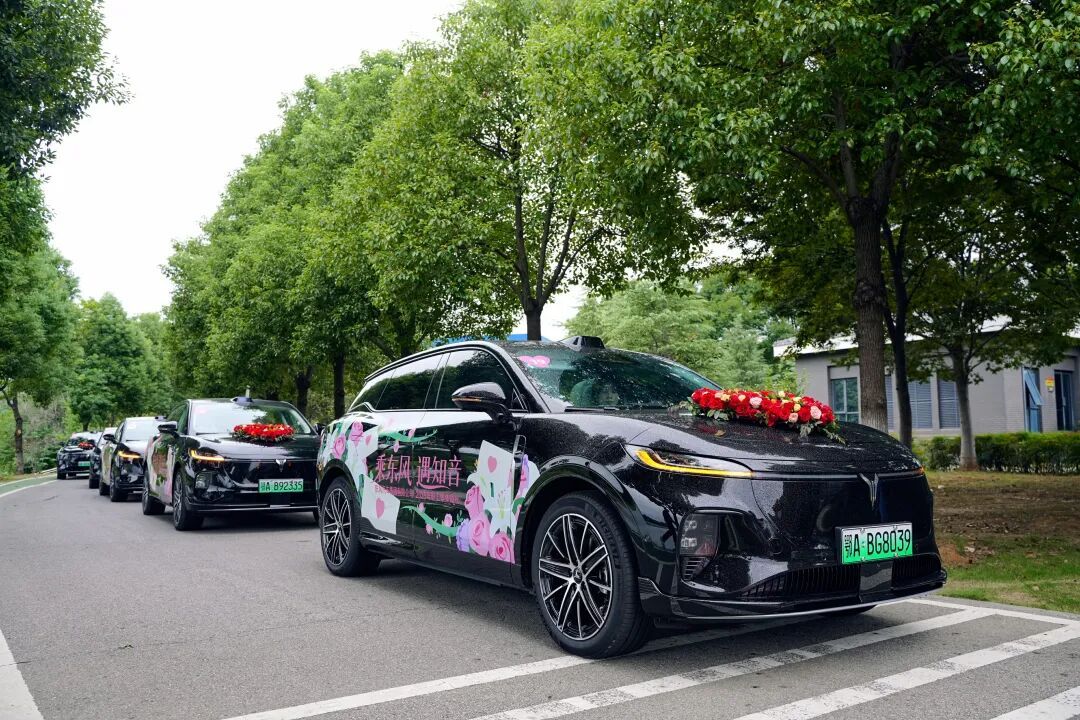 上午9點(diǎn)40分,以嵐圖夢(mèng)想家為頭車,42輛嵐圖知音組成的迎親車隊(duì)緩緩駛?cè)霚幕瘜m。9點(diǎn)58分,新人們手牽紅繡球,共同跨越“幸福之門(mén)”,集體婚禮正式拉開(kāi)帷幕。儀式上,新人們整裝正冠,行對(duì)拜禮、執(zhí)手禮,新人代表領(lǐng)誦婚書(shū)、展示才藝,溫馨而熱烈的氛圍感染了在場(chǎng)的每一位嘉賓。