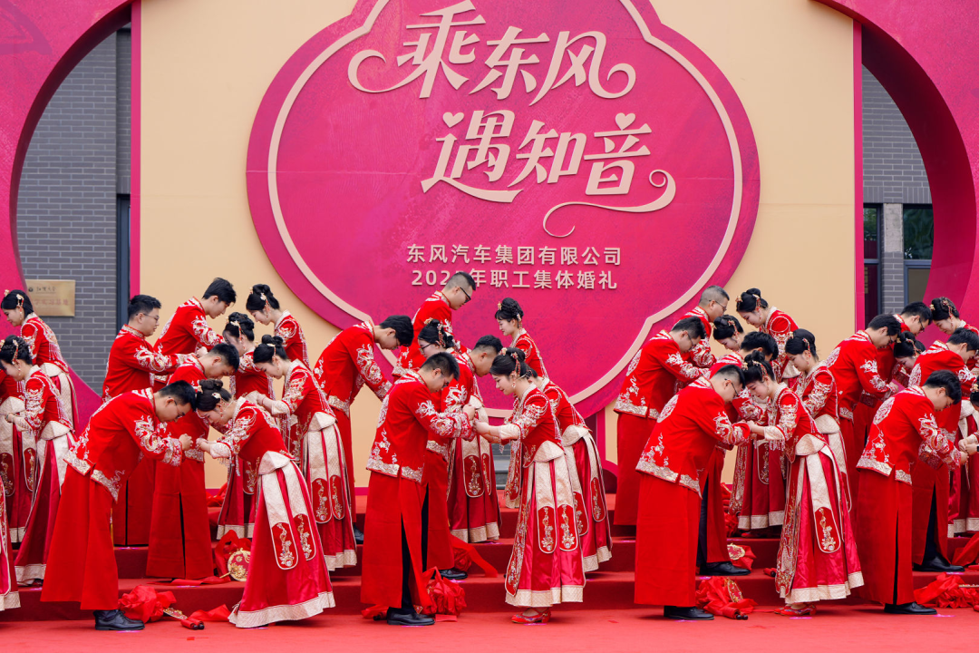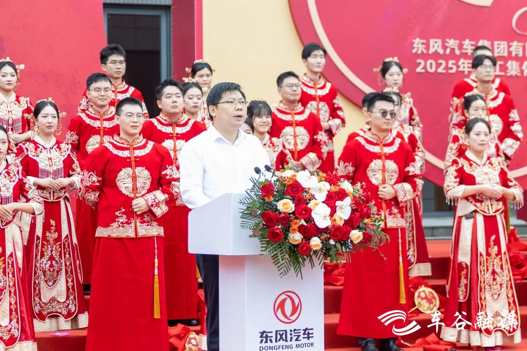 9月20日,東風(fēng)汽車2025年職工集體婚禮在武漢經(jīng)開(kāi)區(qū)湯湖文化宮舉行。40對(duì)新人在親友和嘉賓的見(jiàn)證下,攜手穿越“幸福之門(mén)”,共同步入婚姻的殿堂,開(kāi)啟人生新篇章。