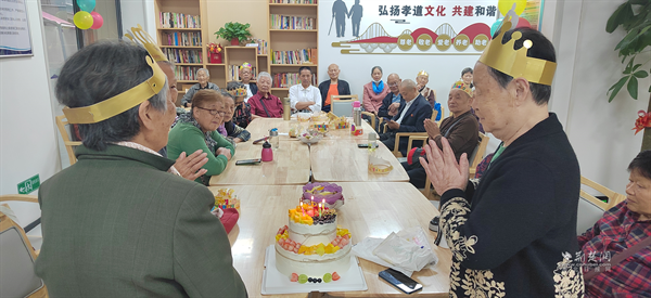 9月25日,社區(qū)頤養(yǎng)中心內(nèi)歡聲笑語、暖意融融,一場“溫情歲月,共享生辰”季度長者生日會在此舉行。社區(qū)“鶴耋安”高齡獨居老人與老年居民齊聚一堂,共度歡樂時光。