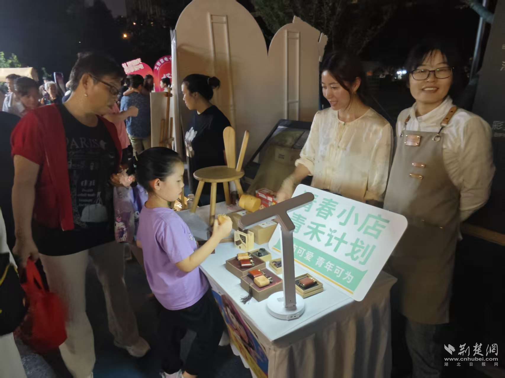 廣場(chǎng)另一側(cè)的主題市集同樣熱鬧非凡:景德鎮(zhèn)陶瓷、手工飾品、特色飲品琳瑯滿目,社區(qū)合伙人設(shè)置自然研學(xué)、木工DIY體驗(yàn)區(qū)成為親子家庭的熱門打卡點(diǎn);便民服務(wù)攤位貼心實(shí)用;“月餅品嘗區(qū)”和“祝福祖國(guó)簽名墻”人氣爆棚。居民李阿姨感慨道:“今天能和鄰居一起做手工、看節(jié)目、聊聊天,感覺特別溫暖,社區(qū)就像一家人?!?/p>
