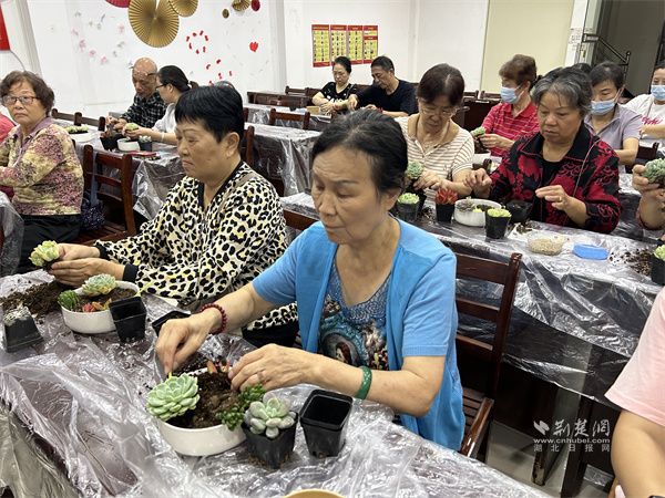 多肉微景觀制作環(huán)節(jié),在專業(yè)園藝師的指導(dǎo)下,居民們專注搭配多肉植株、營養(yǎng)土與彩色鋪面石,巧妙裝點(diǎn)小花盆與玉兔玩偶,不時(shí)交流種植心得,詢問養(yǎng)護(hù)技巧。不一會兒,一個(gè)個(gè)融合綠意與中秋意象的微景觀陸續(xù)完成,翠綠植株與靈動玉兔相映成趣,洋溢著溫馨與創(chuàng)意。