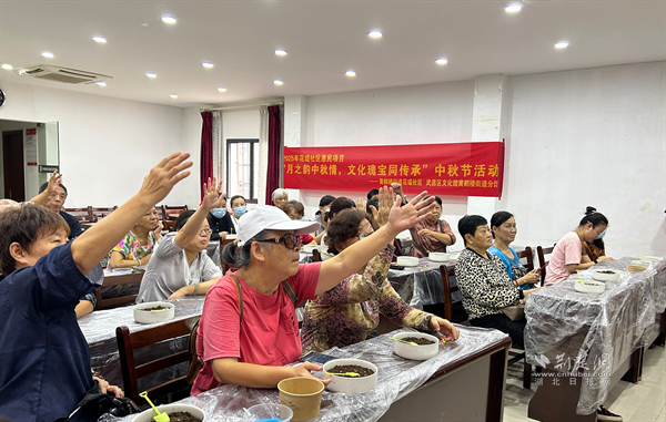 “解碼月餅文化”環(huán)節(jié)則從舌尖上展現(xiàn)中秋韻味。現(xiàn)場展示了廣式蓮蓉、蘇式鮮肉、京式自來紅等各地特色月餅,講解其象征意義——圓形寓意“闔家團(tuán)圓”,五仁寄托“五谷豐登”的美好愿景,并分享了月餅從唐代“胡餅”到現(xiàn)代多元口味的演變歷程。此外,活動還介紹了傳統(tǒng)祭月儀式中的供品擺放、宮燈點(diǎn)燃、祭文誦讀等禮儀細(xì)節(jié),以及浙江錢塘觀潮、安徽徽州舞草龍、廣東潮汕燒塔等地域民俗,讓居民領(lǐng)略到中秋文化在不同水土中綻放的獨(dú)特魅力。