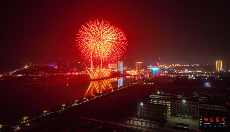 荊楚網(wǎng)(湖北日?qǐng)?bào)網(wǎng))訊(記者 胡小軍 通訊員 吳滕鈺)10月2日晚,英山縣城區(qū)一河兩岸霓虹閃爍,親水步道上鮮艷的國(guó)旗迎風(fēng)飄揚(yáng),處處洋溢著喜慶熱烈的節(jié)日氣氛。大別山文學(xué)廣場(chǎng)周圍成為縣城熱度最高的地區(qū),上萬(wàn)名市民、游客從四面八方匯集于此,大家翹首以盼,提前拿出手機(jī),選好角度,用鏡頭定格即將開始的視覺盛宴。