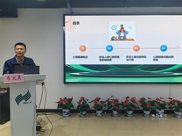 授課現(xiàn)場,醫(yī)院副主任醫(yī)師肖文昊圍繞四大核心板塊展開講解。在“心理健康概述”部分,他清晰界定心理健康的定義與標(biāo)準(zhǔn),重點(diǎn)剖析壓力管理、抗挫能力、情緒調(diào)節(jié)等關(guān)鍵要素,讓員工直觀理解心理健康對工作效率與生活質(zhì)量的影響;針對職業(yè)人群常見的職業(yè)緊張、倦怠、焦慮、抑郁等問題,他深入分析“心理支持缺失”“不良組織文化”“成長機(jī)會不足”等誘因,助力員工精準(zhǔn)識別自身潛在心理困擾。