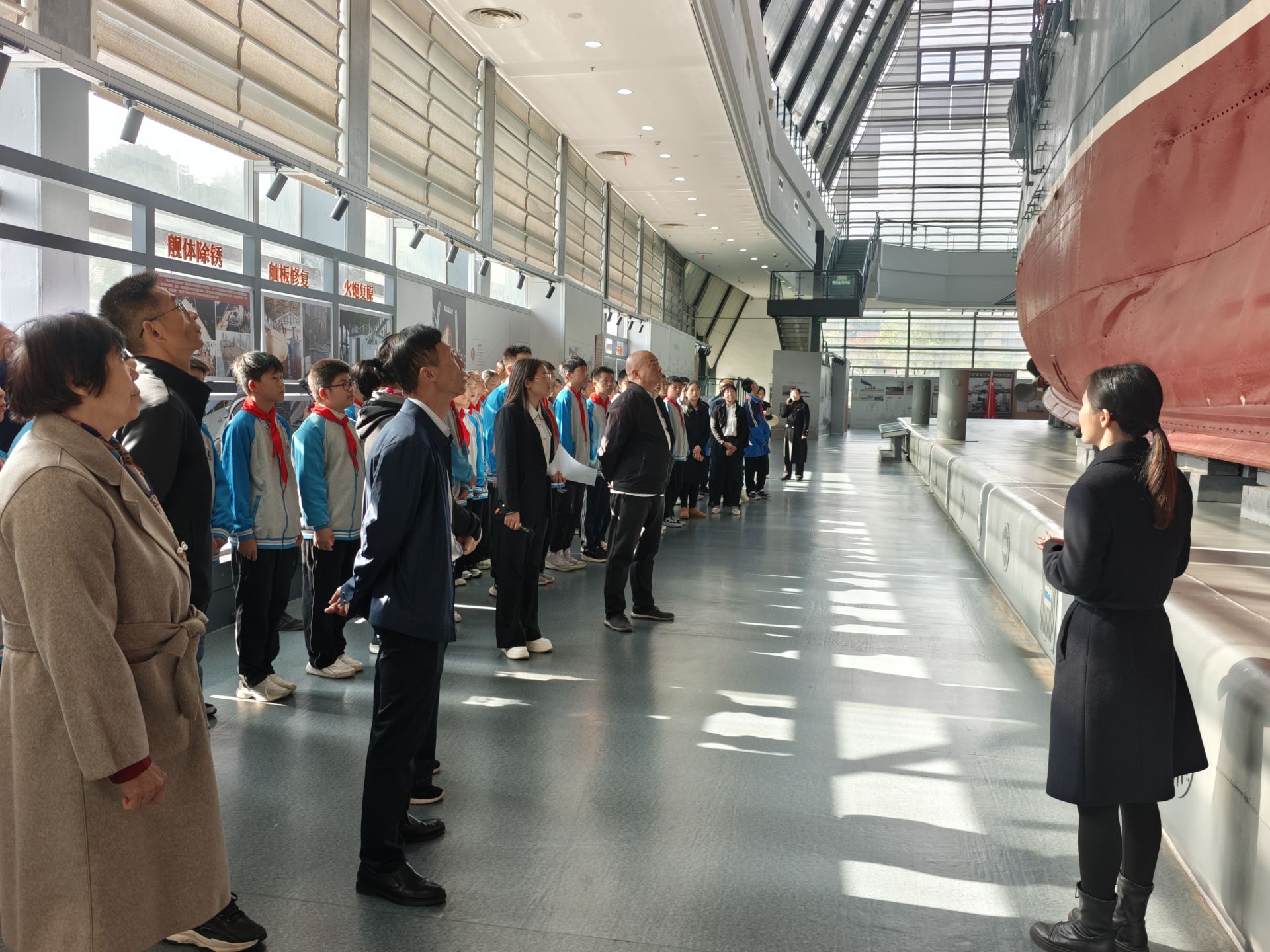 活動于上午8時30分在中山艦艦體前正式啟幕。中山艦旅游區(qū)管理處講解員以艦體尾部“中山”二字的歷史淵源為切入點,講述中山艦從訂購到參與抗戰(zhàn)的全歷程,專業(yè)解讀中融入文物背后的英雄故事;緊接著全體人員齊聲合唱《保衛(wèi)大武漢》《保衛(wèi)黃河》兩首抗戰(zhàn)經(jīng)典歌曲,伴隨著激昂的旋律,戰(zhàn)火紛飛的年代仿佛就在眼前,八十七年前中山艦官兵在武漢會戰(zhàn)中浴血奮戰(zhàn)的壯烈場景重現(xiàn)腦海。
