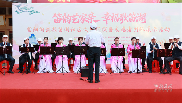 敬老月活動(dòng)的重頭戲——“笛韻藝家親,幸福歌笛湖”文藝匯演,在社區(qū)居民的期待中精彩上演。激昂的開場音樂鼓瞬間點(diǎn)燃了現(xiàn)場氣氛;飽含深情的集體詩朗誦《偉大的祖國》抒發(fā)了對祖國的熱愛與祝福;口琴軍歌三連奏用熟悉的旋律勾起了現(xiàn)場觀眾的共同記憶;運(yùn)動(dòng)模特走秀展現(xiàn)出了獨(dú)特的銀齡魅力;郭書文團(tuán)隊(duì)的電吹管表演用悠揚(yáng)的旋律將匯演氣氛推向高潮。整場文藝匯演內(nèi)容豐富、形式多樣,不僅為社區(qū)老年人提供了一個(gè)展示自我的平臺(tái),更營造了歡樂祥和的節(jié)日氛圍。