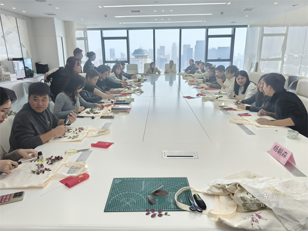 宣講結(jié)束后,現(xiàn)場(chǎng)還組織了“植物拓印”非遺體驗(yàn)環(huán)節(jié)。在武漢啟晨社會(huì)組織的指導(dǎo)下,黨員們以純天然植物為材料,制作了出了各具特色的環(huán)保袋。大家紛紛表示,在動(dòng)手創(chuàng)造美的過程中,切身感受到了綠色低碳生活的魅力,增強(qiáng)了踐行環(huán)保理念的自覺。