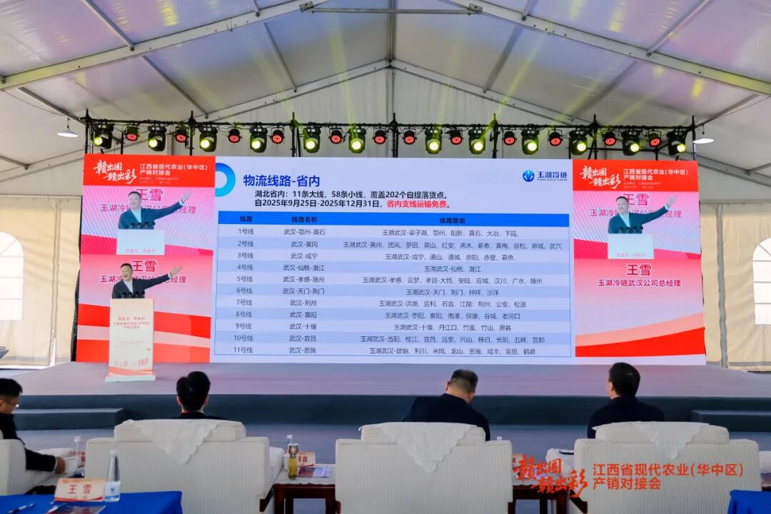 對接會當(dāng)天,玉湖冷鏈武漢公司負(fù)責(zé)人介紹了依托黃陂基地構(gòu)建的綜合服務(wù)體系及專項物流優(yōu)惠政策。該體系以“降本增效”為核心,為贛鄂兩地食材流通提供從產(chǎn)地倉儲、干線運輸?shù)浇K端配送的一體化解決方案,助力江西企業(yè)實現(xiàn)“產(chǎn)地直供+華中直銷”的暢通循環(huán)。