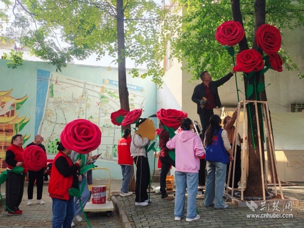 荊楚網(wǎng)(湖北日?qǐng)?bào)網(wǎng))訊(通訊員 陳曉燕 周佳穎)11月5日,武昌區(qū)黃鶴樓街道后宰門街角一道獨(dú)特的風(fēng)景引人注目,一棵“永不凋零”的“愛之樹”絢麗綻放,樹上盛開的巨型玫瑰花與一旁的月球投影裝置相映成趣,與遠(yuǎn)方的黃鶴樓共同構(gòu)成一幅詩(shī)意城市景觀。