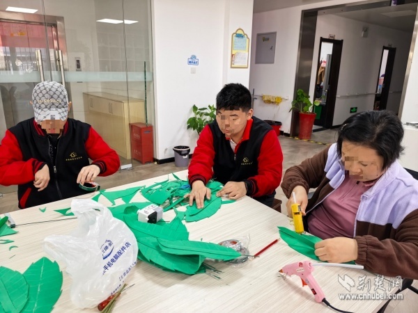 在為期兩周的創(chuàng)作中,陽(yáng)光家園學(xué)員在志愿者的陪伴下,從設(shè)計(jì)畫圖、精準(zhǔn)剪裁到立體塑形、精細(xì)組裝,系統(tǒng)學(xué)習(xí)并逐步掌握了銀杏葉與玫瑰花的制作技巧?!暗谝淮螀⑴c制作這么大的藝術(shù)作品,沒想到我也能創(chuàng)造出這么美的作品!”一位學(xué)員自豪地展示成果。創(chuàng)作過(guò)程中,殘健伙伴分工協(xié)作、各展所長(zhǎng),在默契配合中締結(jié)了深厚情誼。