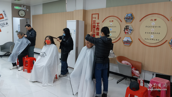 活動最后是便民服務(wù)環(huán)節(jié)。社區(qū)對接武昌“新興學(xué)院”天姿美容美發(fā)學(xué)校資源開展義務(wù)理發(fā)服務(wù)。志愿者們提前布置好服務(wù)區(qū),認(rèn)真做好工具消毒,隨后耐心詢問每一位前來理發(fā)的流動黨員和老年人的需求,憑借嫻熟技藝為大家精心修剪發(fā)型?!安怀錾鐓^(qū)就能享受到這么好的服務(wù),還能和黨員同志們一起學(xué)習(xí)交流,心里特別暖。”一位剛理完發(fā)的老人滿意地說道?,F(xiàn)場洋溢著濃濃的鄰里溫情。