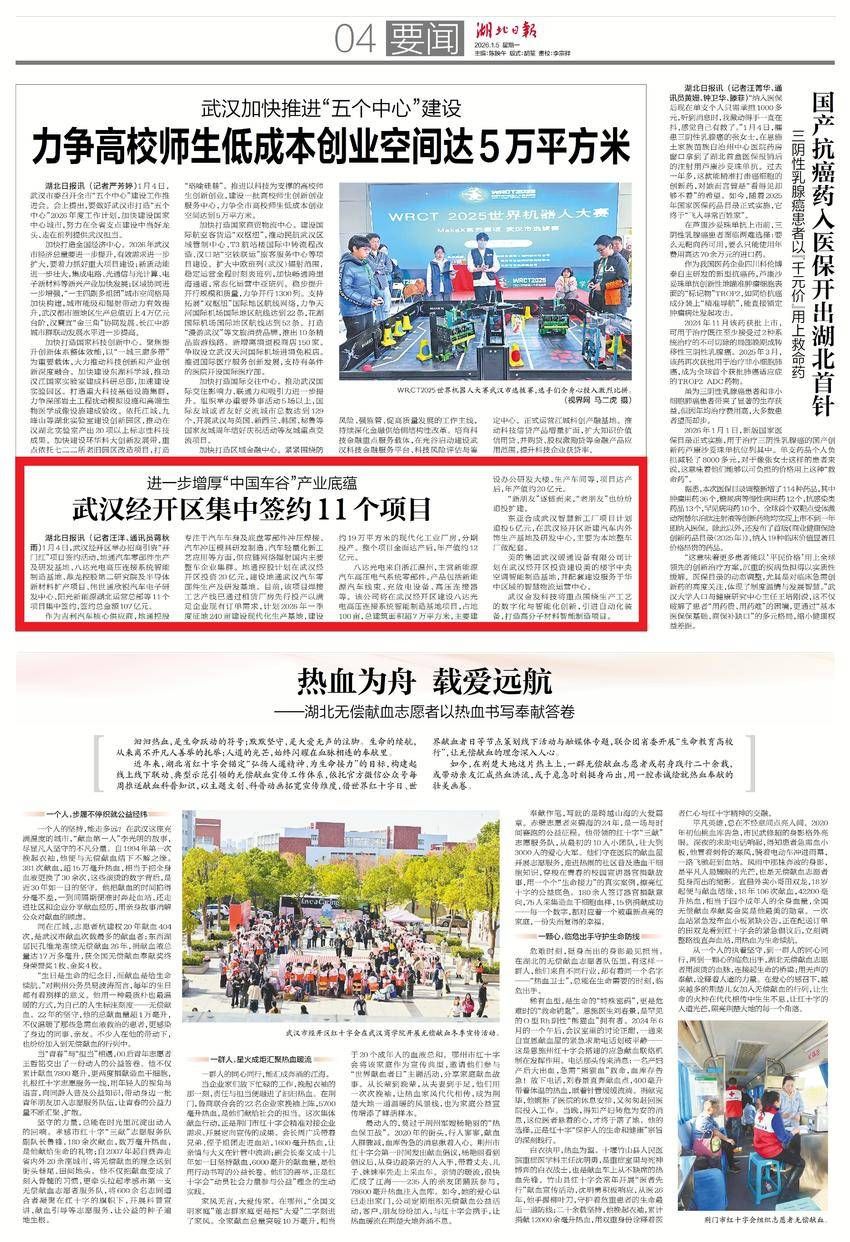 1月5日,湖北日報要聞版報道:進(jìn)一步增厚“中國車谷”產(chǎn)業(yè)底蘊 武漢經(jīng)開區(qū)集中簽約11個項目