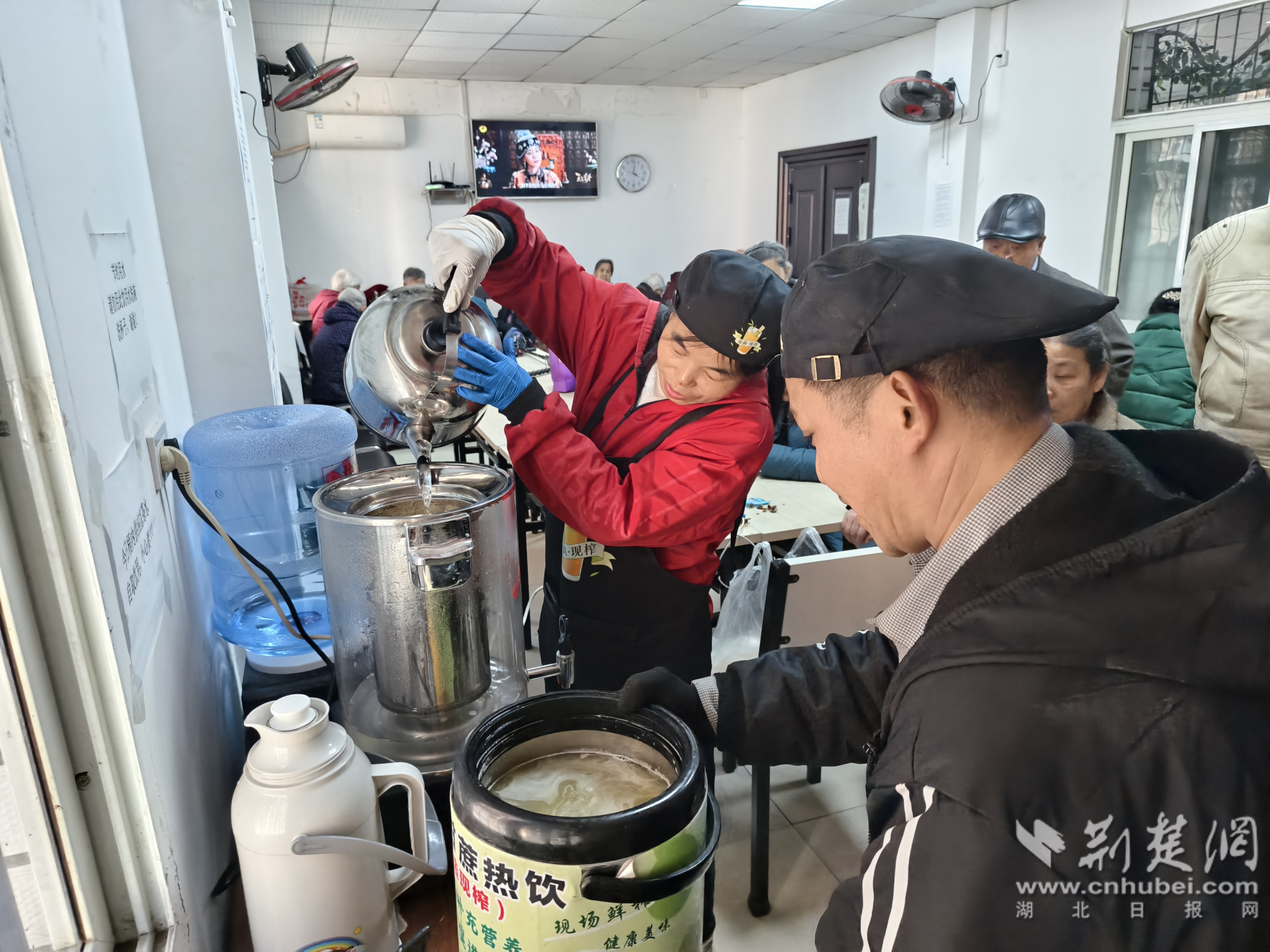 荊楚網(wǎng)(湖北日?qǐng)?bào)網(wǎng))訊(通訊員 游薇 侯本瑞)近日,在武昌區(qū)楊園街道電力新村社區(qū)取暖室內(nèi),愛心商家每天惠商鋪的工作人員將一杯杯甘甜溫?zé)岬母收嶂偷缴鐓^(qū)老人們手中,用樸實(shí)善舉傳遞社會(huì)溫情。