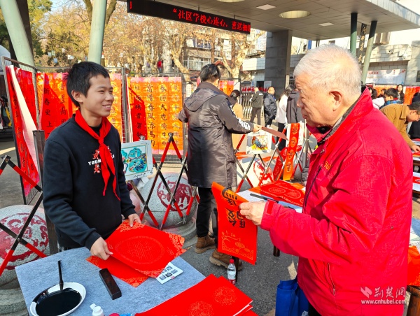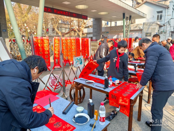 荊楚網(wǎng)(湖北日報網(wǎng))訊(通訊員 胡雅菲 許小玲)為弘揚中華優(yōu)秀傳統(tǒng)文化,凝聚區(qū)域共建合力,助力武昌區(qū)創(chuàng)建“中國書法之鄉(xiāng)”,1月15日上午,由湖北省教育學會書法教育專業(yè)委員會主辦、武昌區(qū)黃鶴樓街道花堤社區(qū)聯(lián)合共建單位湖北省武昌實驗小學承辦的“社區(qū)學校心連心,喜送福聯(lián)迎新春”公益活動,在實驗小學門口拉開帷幕。
