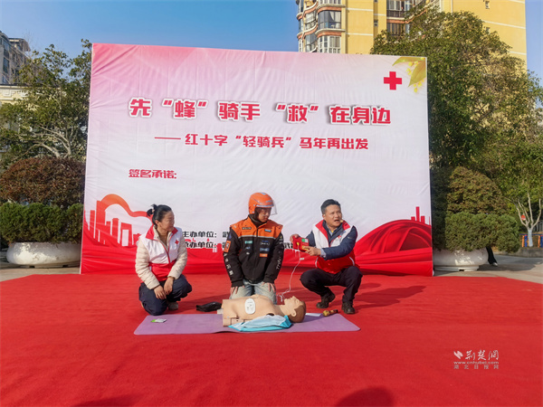 荊楚網(wǎng)(湖北日?qǐng)?bào)網(wǎng))訊(通訊員 王瑜婷)1月15日,武昌區(qū)南湖街道寶安社區(qū)開(kāi)展“先‘蜂’騎手,‘救’在身邊——紅十字‘輕騎兵’馬年再出發(fā)”主題活動(dòng)。市、區(qū)紅十字會(huì)及南湖街道相關(guān)負(fù)責(zé)人,外賣、快遞小哥代表齊聚現(xiàn)場(chǎng),共同見(jiàn)證這支由新就業(yè)群體組成的紅十字“輕騎兵”志愿服務(wù)隊(duì)再啟新程。