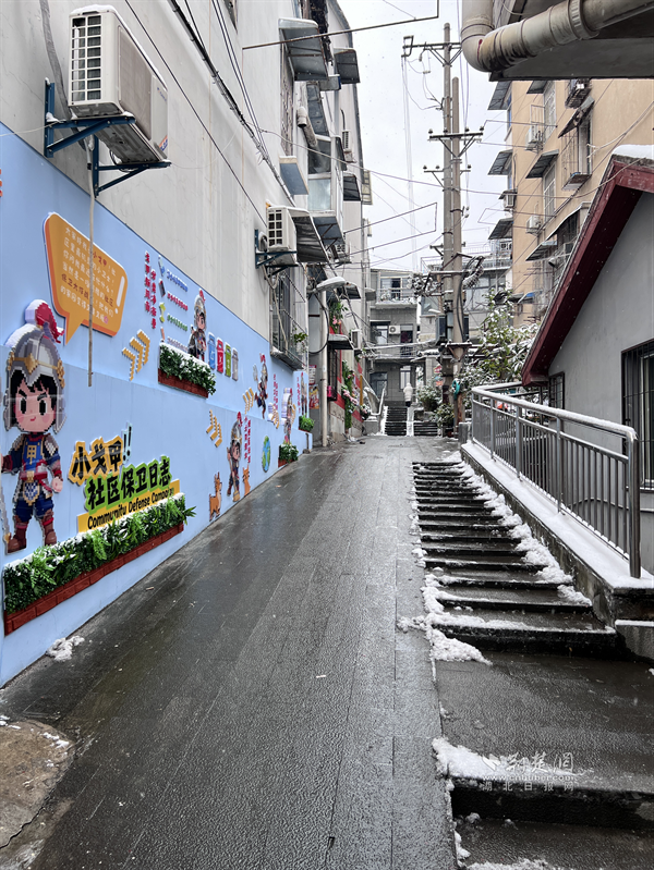 20日清晨,糧道街胭脂路部分路段冰雪堆積,步行、車(chē)行存在安全隱患。沿街商戶主動(dòng)設(shè)立板凳、雪糕筒提醒路人繞行,并拿起掃把清掃路邊積雪,方便路人安全通過(guò)?!斑@是武漢的第一場(chǎng)雪,雖然很美,但路滑容易摔跤,我們?cè)琰c(diǎn)把門(mén)口掃干凈,大家走路就放心了?!币晃簧虘衾习逡贿吂讱庖贿呎f(shuō)道。這一把把掃帚不僅掃去了積雪,更暖了人心,商戶們用最樸實(shí)的行動(dòng),在寒冬街頭筑起了一道溫暖的安全防線,展現(xiàn)了“社區(qū)是我家”的主人翁精神。