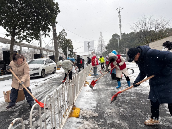 面對雪情,街道迅速啟動應急響應機制,提前統(tǒng)籌物資與人員,確保除雪作業(yè)高效有序開展。“聞雪而動”成為街道上下的共同行動。志愿服務力量第一時間集結,奔赴除雪一線,開展撒鹽除冰、積雪清運、防滑墊鋪設等工作。在寒風凜冽的街頭,一抹抹“志愿紅”格外醒目,他們用雙手鏟出一條條平安通道,在寒冬中筑起溫暖而堅實的安全防線,傳遞著守望相助、共建共享的溫情。