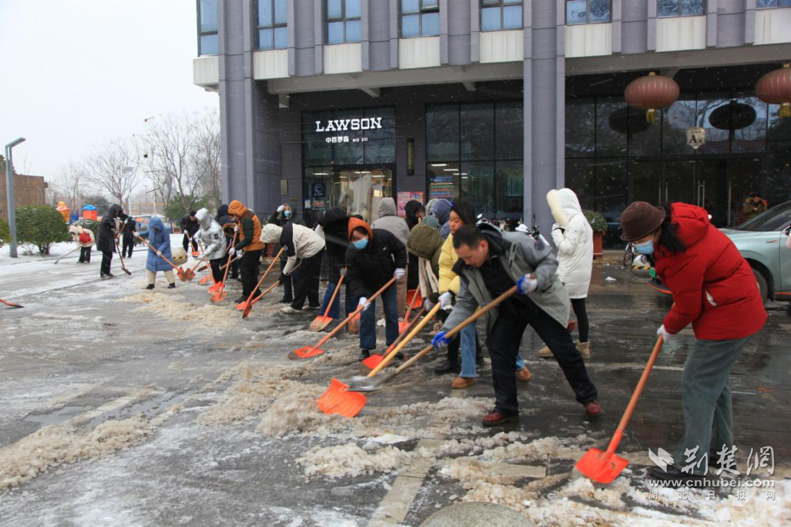 在洪山獅子山社區(qū)、東湖高新區(qū)豹澥街道、漢陽區(qū)江堤及四新街道、東湖風(fēng)景區(qū)各村場(chǎng),物業(yè)、居民志愿者在市民在確保安全的前提下,就近參與掃雪鏟冰、鋪設(shè)草墊,對(duì)居民小區(qū)出入口、單元門棟、地下車庫坡道等關(guān)鍵區(qū)域積雪積冰進(jìn)行清理,對(duì)轄區(qū)幼兒園、小學(xué)、初中等學(xué)校周邊路段開展融雪除冰,確保居民出行暢通,共同維護(hù)美麗武漢。