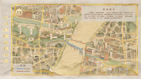 “江漢攬勝”主題游線(xiàn)以百年輪渡為紐帶,串聯(lián)起5A級(jí)黃鶴樓景區(qū)與4A級(jí)知音文化旅游區(qū),集亭、臺(tái)、樓、閣、殿五種傳統(tǒng)建筑形制于一體,生動(dòng)展現(xiàn)武漢“半城山水半城詩(shī)”的城市意象。游線(xiàn)自黃鶴樓啟程,途經(jīng)斗級(jí)營(yíng)、戶(hù)部巷,乘輪渡橫渡長(zhǎng)江,觀賞晴川燈會(huì),最終探訪知音殿、游覽古琴臺(tái),集萃武漢長(zhǎng)江兩岸自然風(fēng)光、文化地標(biāo)與城市煙火氣,是自然與人文、傳統(tǒng)與現(xiàn)代交融的精品線(xiàn)路。