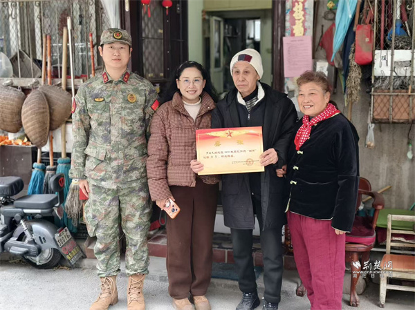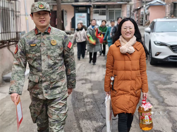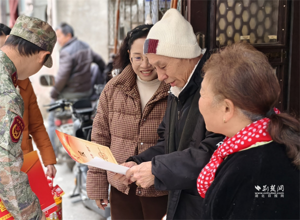荊楚網(wǎng)(湖北日?qǐng)?bào)網(wǎng))訊(通訊員 蘇楚雄 鐘霓 游薇 侯本瑞)1月29日,武昌區(qū)楊園街道電力新村社區(qū)鑼鼓聲響、熱鬧非凡。街道人武部、退役軍人服務(wù)站和社區(qū)工作人員組成“報(bào)喜小隊(duì)”為現(xiàn)役軍人家屬送去子女在部隊(duì)榮獲的“四有”優(yōu)秀學(xué)員榮譽(yù)證書(shū),并送上慰問(wèn)物資,傳遞對(duì)軍屬的崇高敬意和誠(chéng)摯關(guān)懷。