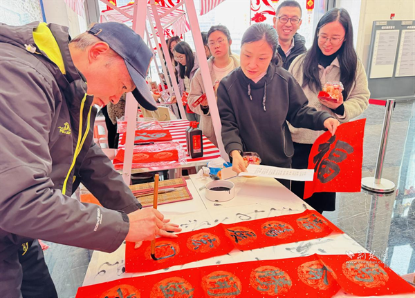 在“傳統(tǒng)年味體驗(yàn)區(qū)”,書(shū)法老師揮毫潑墨,為職工書(shū)寫定制春聯(lián)與“?!弊?,不少職工也提筆嘗試,感受筆墨書(shū)香中的文化傳承。非遺剪紙攤位前,剪紙藝人細(xì)心指導(dǎo),一張張紅紙?jiān)谑种凶兂删赖拇盎?,職工在?dòng)手實(shí)踐中領(lǐng)略傳統(tǒng)手工藝的魅力。