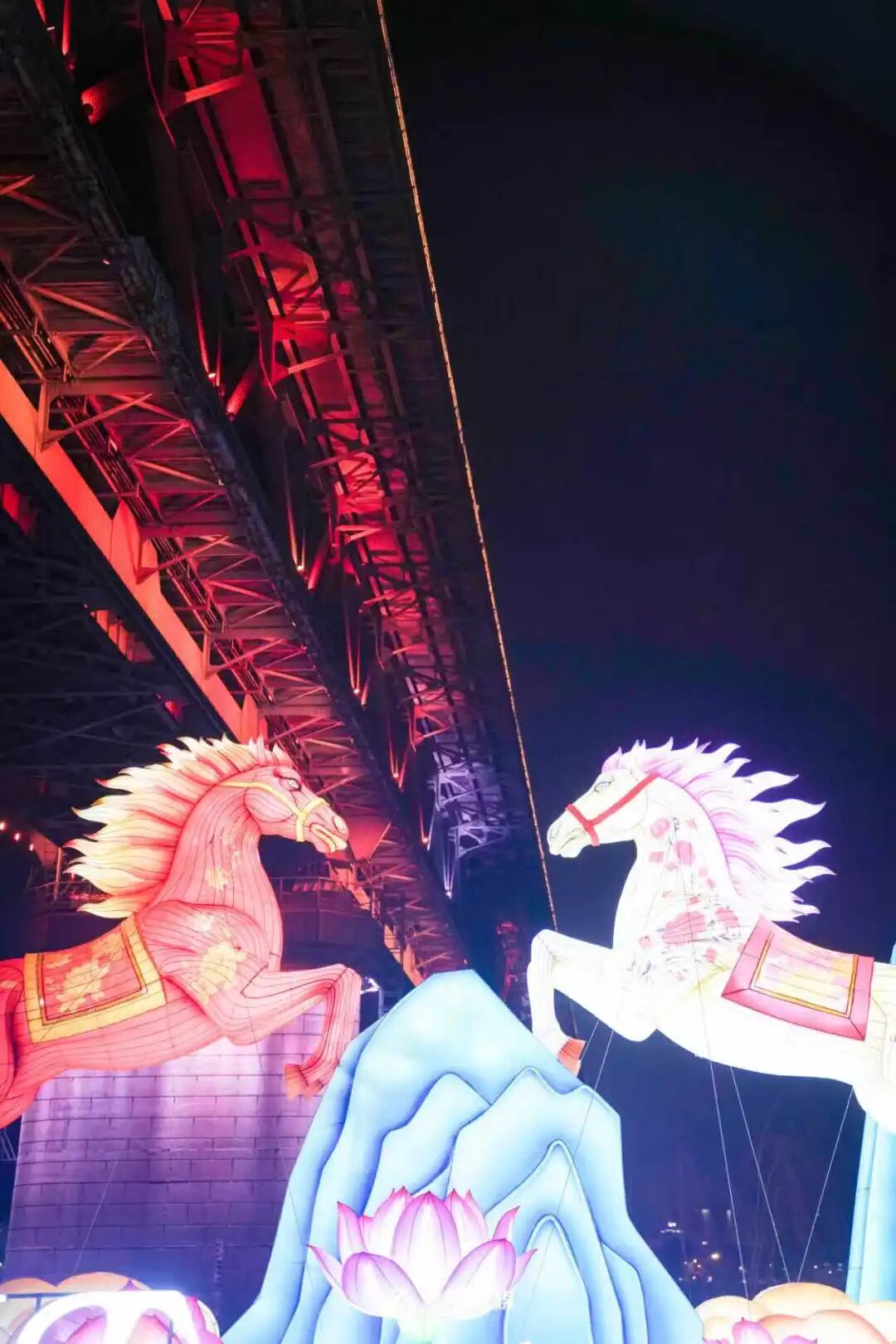 長江地標巨型燈組+400米非遺花燈長廊,讓你邊走邊拍,根本停不下來,上漢服,拍照更加好看出片。