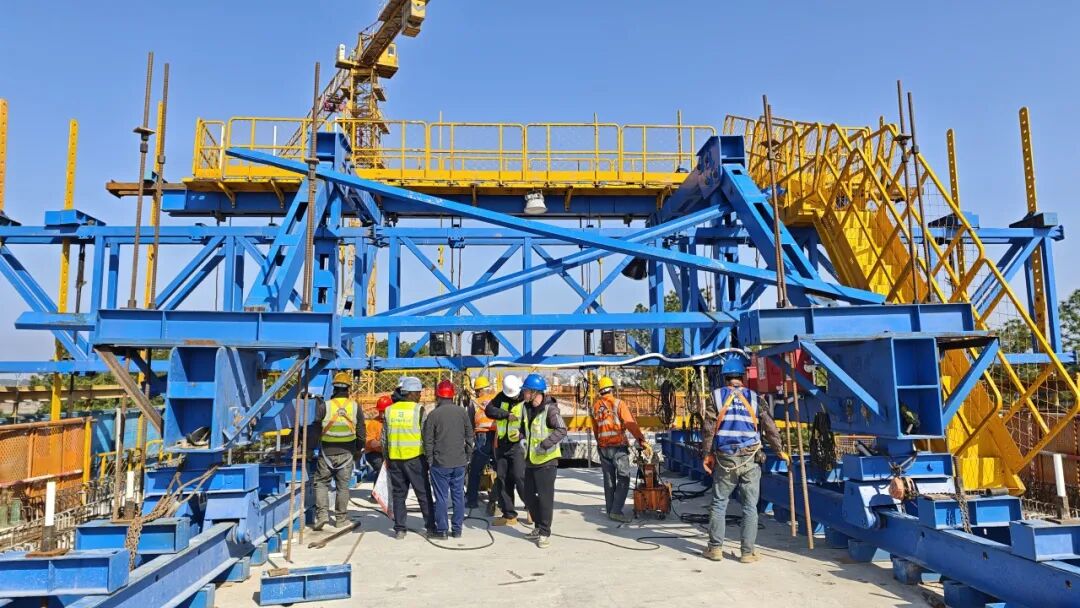唐旺表示,當(dāng)前重點(diǎn)推進(jìn)跨川龍大道連續(xù)梁施工,全體人員加班加點(diǎn)、爭(zhēng)分奪秒搶抓工期,全力確??绱埓蟮肋B續(xù)梁三月底順利合攏。