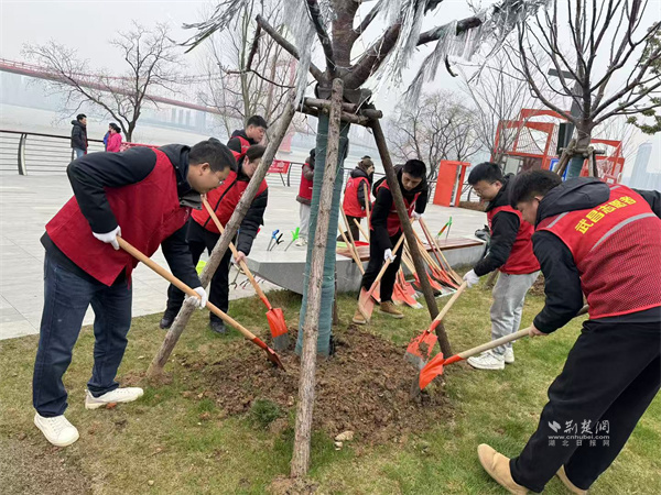 理論學(xué)習(xí)終要落地于實(shí)踐行動(dòng)。宣講結(jié)束后,志愿者們手持夾鉗、垃圾袋等工具,對(duì)長江岸邊的垃圾、雜草及水面漂浮物開展地毯式清理,不放過任何衛(wèi)生死角,用雙手讓雜亂的灘涂恢復(fù)整潔開闊。恰逢植樹節(jié)將至,志愿者們又揮鍬鏟土、扶苗圍堰、提水澆灌,在指定區(qū)域有序栽種新苗,為長江岸線增添一抹新綠,以實(shí)際行動(dòng)厚植生態(tài)底色,踐行綠色發(fā)展理念。