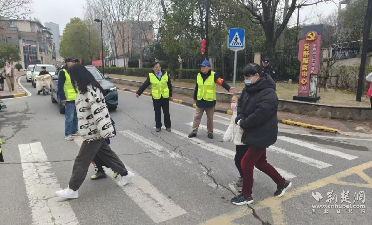 荊楚網(wǎng)(湖北日?qǐng)?bào)網(wǎng))訊(通訊員 吳曉琪、楊慕曦、曹悅、黃盈)春風(fēng)送暖,開學(xué)啟航。3月4日,2026年春季新學(xué)期開學(xué)第一天,武漢經(jīng)開區(qū)軍山新城蒲潭社區(qū)、龍湖社區(qū)、小軍山社區(qū)、川江池社區(qū)同步啟動(dòng)春季開學(xué)護(hù)學(xué)專項(xiàng)行動(dòng),聯(lián)動(dòng)社區(qū)志愿者、民警、物業(yè)等多方力量,在學(xué)校周邊引導(dǎo)接送車輛即停即走,護(hù)送學(xué)生安全通過(guò)馬路,及時(shí)排查消除各類安全隱患,用實(shí)際行動(dòng)為孩子們筑起了一道安全的“防護(hù)墻”,為廣大師生營(yíng)造了安全、有序、暢通的入學(xué)環(huán)境。