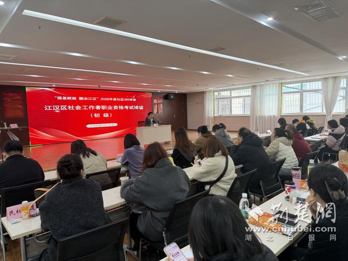 荊楚網(wǎng)(湖北日?qǐng)?bào)網(wǎng))訊(記者 何婧 通訊員 余曉潔)3月6日,江漢區(qū)社會(huì)工作者職業(yè)資格考試(初級(jí))集中培訓(xùn)在北湖街道環(huán)保社區(qū)開班,培訓(xùn)采取“線下主會(huì)場(chǎng)+視頻分會(huì)場(chǎng)”形式開展,全區(qū)各街道及相關(guān)區(qū)直單位的510余名備考人員同步參訓(xùn)。此次培訓(xùn)標(biāo)志著江漢區(qū)“專業(yè)賦能·持證攻堅(jiān)”專項(xiàng)提升行動(dòng)進(jìn)入系統(tǒng)推進(jìn)階段。
