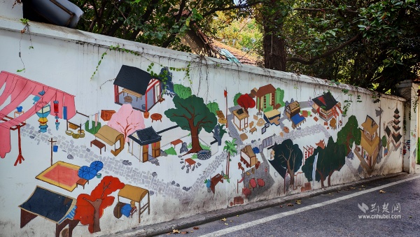 社區(qū)黨委以文化為著力點(diǎn),以“微改造、精提升”為路徑,探索打造古今交融、文旅共生的“宜游”社區(qū)。從九龍井正街到先賢街,藏在居民樓中、電線桿上的明楚王府文化彩繪與武昌古城元素相得益彰,地名文化墻以漫畫形式述說(shuō)老街往事,生動(dòng)展示社區(qū)文化遺存和老街古巷歷史。各色花卉綠植與武漢主題創(chuàng)意打卡裝置珠玉其間,形成“幾步一景”的游覽體驗(yàn)。