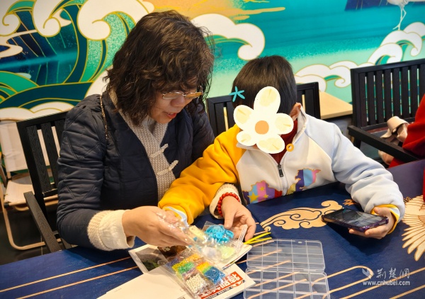 在手工制作環(huán)節(jié),愛心媽媽們與孩子們圍坐在一起,共同創(chuàng)作拼豆手工作品。一顆顆五顏六色的小小塑料豆,在孩子們專注的目光中、在稚嫩小手的擺弄下,逐漸變成可愛精美的圖案。