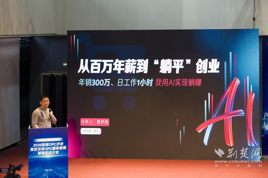 活動(dòng)現(xiàn)場(chǎng),創(chuàng)業(yè)者分享環(huán)節(jié)成為一大亮點(diǎn)。36歲的創(chuàng)業(yè)者廖聲彪帶著自己的創(chuàng)業(yè)故事登臺(tái),言語(yǔ)樸實(shí)卻充滿力量。他向現(xiàn)場(chǎng)觀眾分享了自己的創(chuàng)業(yè)歷程:從擁有百萬(wàn)年薪的職場(chǎng)人,毅然轉(zhuǎn)型選擇“躺平式”創(chuàng)業(yè),如今他的項(xiàng)目年銷(xiāo)售額已達(dá)300萬(wàn),每天僅需工作1小時(shí),憑借AI技術(shù)成功實(shí)現(xiàn)了“躺賺”的創(chuàng)業(yè)愿景。此外,他還現(xiàn)場(chǎng)表示,下半年將從杭州回到武漢,開(kāi)啟一人公司的創(chuàng)業(yè)模式,扎根江城這片科創(chuàng)沃土,為武漢OPC產(chǎn)業(yè)發(fā)展貢獻(xiàn)力量。