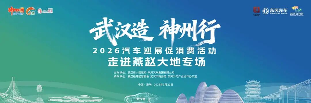 風(fēng)起車谷,智惠燕趙。3月21日,“武漢造 神州行”2026汽車巡展促消費(fèi)活動(dòng)·走進(jìn)燕趙大地專場(chǎng)將在河北省廊坊市舉行。這也是“武漢造”汽車巡展促消費(fèi)活動(dòng)首次走進(jìn)燕趙大地。