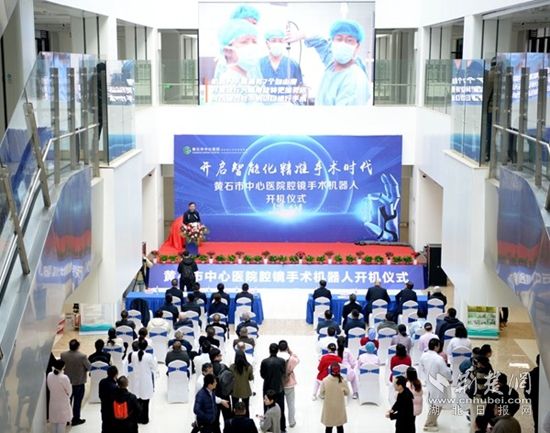 黃石市中心醫(yī)院院長袁明在開機(jī)儀式上致辭,他表示,黃石市首臺腹腔鏡機(jī)器人在黃金山院區(qū)投入使用, 將極大地推動黃石市中心醫(yī)院外科技術(shù)的發(fā)展。黃石市中心醫(yī)院將以此技術(shù)開展為契機(jī),進(jìn)一步提高醫(yī)療質(zhì)量,為黃石市衛(wèi)生健康事業(yè)高質(zhì)量發(fā)展作出新的更大貢獻(xiàn)。