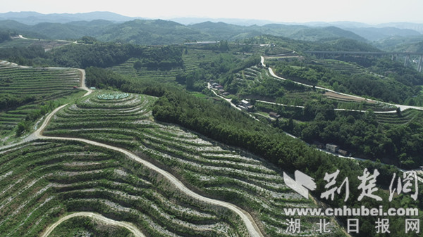 2021年以來(lái),全鎮(zhèn)整合8個(gè)村農(nóng)業(yè)資源,投入資金1600萬(wàn)元,新建高標(biāo)準(zhǔn)茶園7000畝,提檔升級(jí)老舊茶園3000畝,培育茶苗500萬(wàn)株,促進(jìn)300余人穩(wěn)定就業(yè),實(shí)現(xiàn)月均工資2600元以上。圖為7月7日航拍的青山鎮(zhèn)萬(wàn)畝有機(jī)茶園一角。