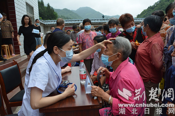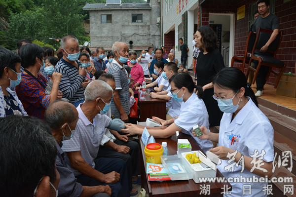 楊柳村位于位于鄖陽區(qū)西南部的大山深處,距離十堰市區(qū)50余公里,是十堰市稅務(wù)局鄉(xiāng)村振興聯(lián)系點(diǎn),村里以老年人居多。聽說市人民醫(yī)院的專家要來義診,村民們早早就來到村委會,在市稅務(wù)局駐村工作隊(duì)的精心組織下,佩戴口罩排起了長隊(duì)。簡短的介紹儀式結(jié)束后,來自市人民醫(yī)院心血管內(nèi)科、兒科、消化內(nèi)科、睡眠醫(yī)學(xué)科、內(nèi)分泌科等專業(yè)學(xué)科的8位專家便立即開始為村民診療。