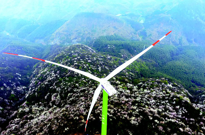 3月30日,鳥瞰咸寧大幕山,一臺(tái)臺(tái)發(fā)電風(fēng)機(jī)如鳥兒展翅,“徜徉”在漫山櫻花花海中。大幕山風(fēng)力發(fā)電場由中廣核集團(tuán)投資5.5億元建設(shè),計(jì)劃安裝29臺(tái)風(fēng)力發(fā)電機(jī)組,總裝機(jī)規(guī)模63.8兆瓦,年發(fā)電量約1.1億千瓦時(shí)。目前已安裝風(fēng)機(jī)16臺(tái),預(yù)計(jì)5月底完工、并網(wǎng)發(fā)電。
