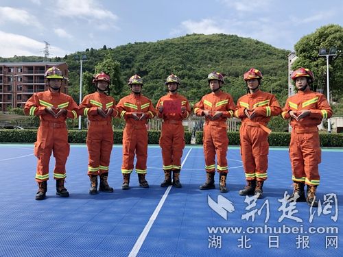 圖為消防指戰(zhàn)員手勢(shì)比心祝福母親節(jié)?!〔塘窒葦z