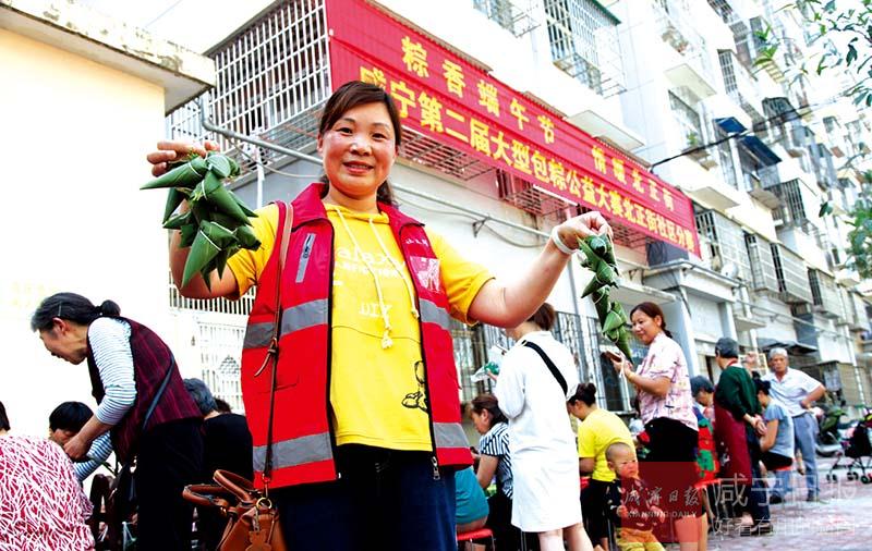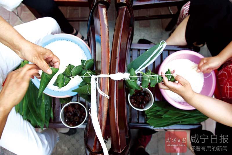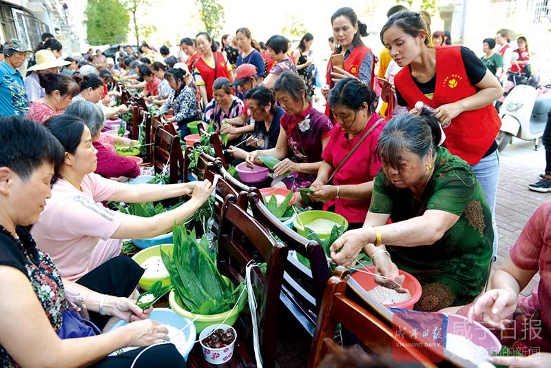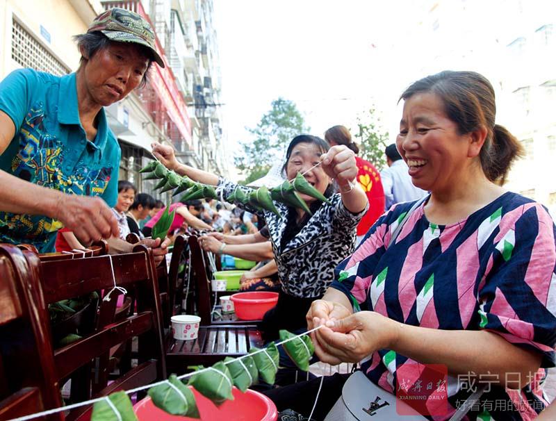 “瞧,這個粽子包得真好,不僅個頭飽滿,而且有棱有角”“蜜棗餡的粽子,還沒煮就已經(jīng)覺得很香了”……4號下午,在咸安區(qū)永安街道辦事處北正街社區(qū)幸福家園小區(qū),擠滿了社區(qū)居民,咸寧第二屆大型包粽子大賽北正街社區(qū)分賽正在進(jìn)行,居民們邊包粽子邊拉家常,好不熱鬧。
