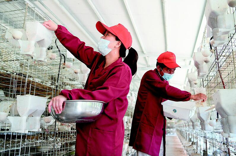 7月3日,通城縣北港鎮(zhèn)大界村土鴿養(yǎng)殖專業(yè)合作社社員在給土鴿喂食。該合作社是通城返鄉(xiāng)創(chuàng)業(yè)女青年劉慶創(chuàng)辦,建設(shè)標準化土鴿養(yǎng)殖基地,飼養(yǎng)近萬對土鴿。合作社采取“支部+合作社+基地+貧困戶”模式,吸納當?shù)?0戶貧困戶打工就業(yè),10戶貧困戶入股分紅,帶動周邊近百戶貧困戶發(fā)展養(yǎng)鴿增收脫貧。